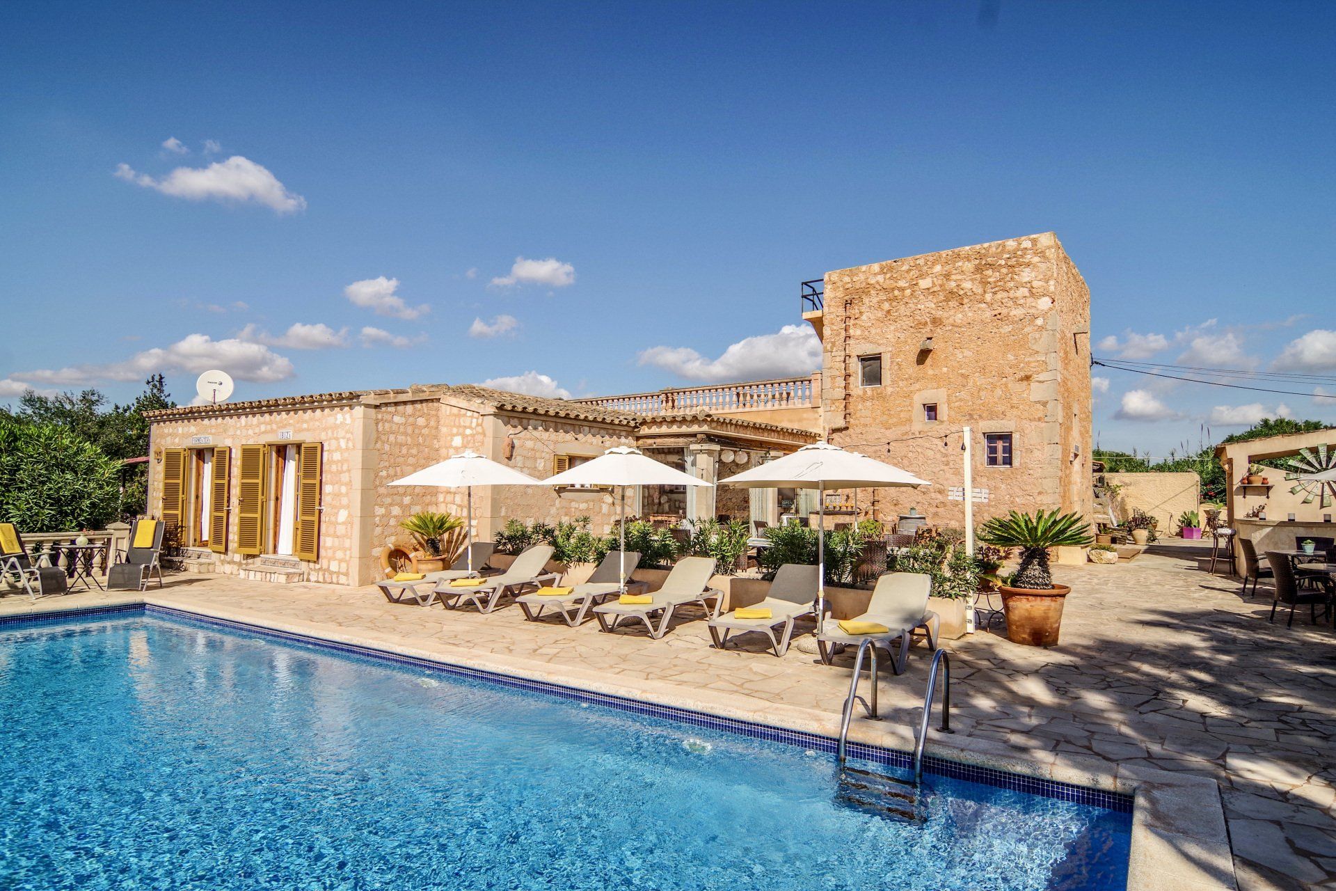 Enjoy relaxing hours by the spacious pool or on the various terraces. The facility stands on almost 25,000 m² of land, in a wonderfully quiet location with a view of the surrounding fields, olive trees and, from the mill room, even to the neighboring island of Cabrera and the sea.