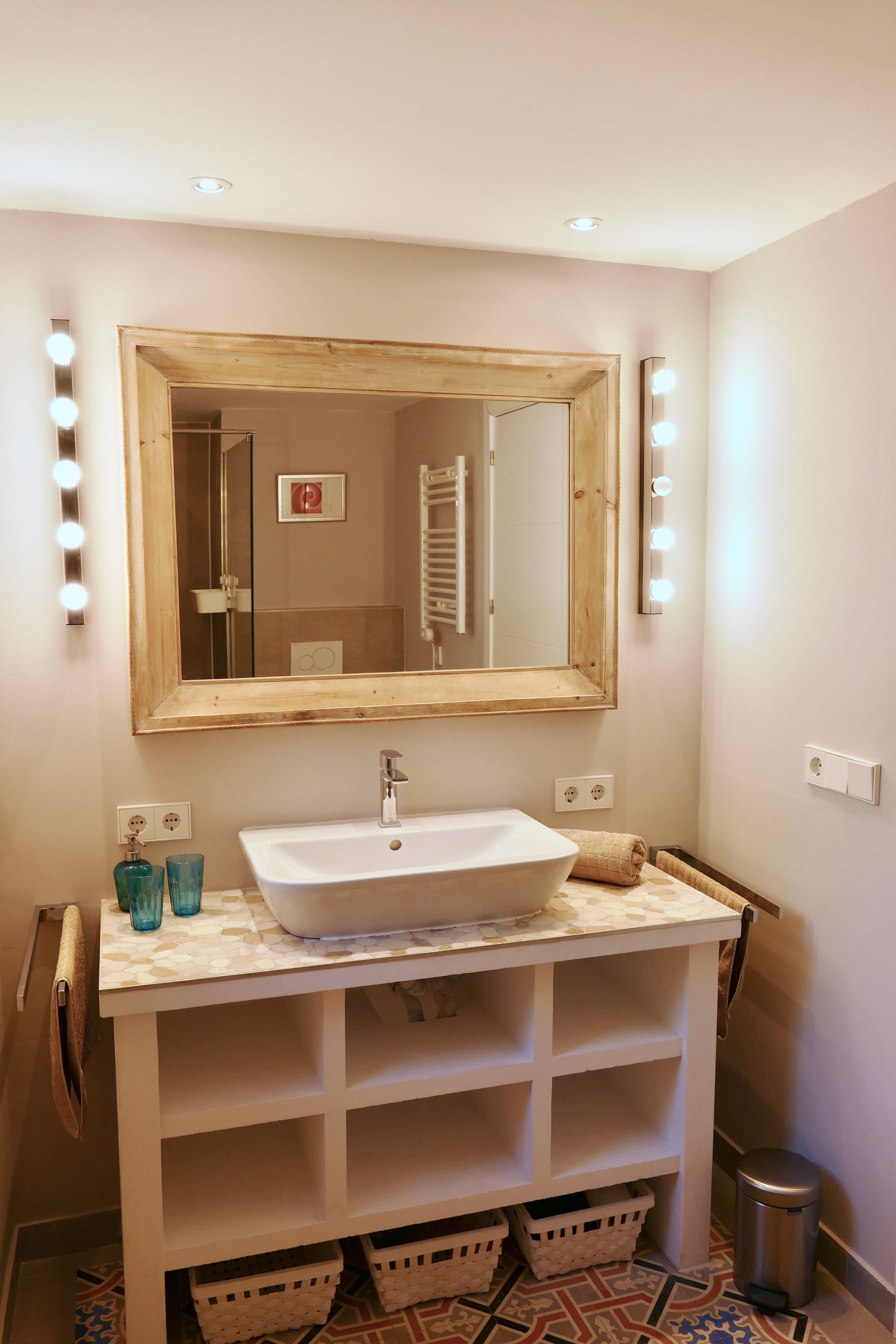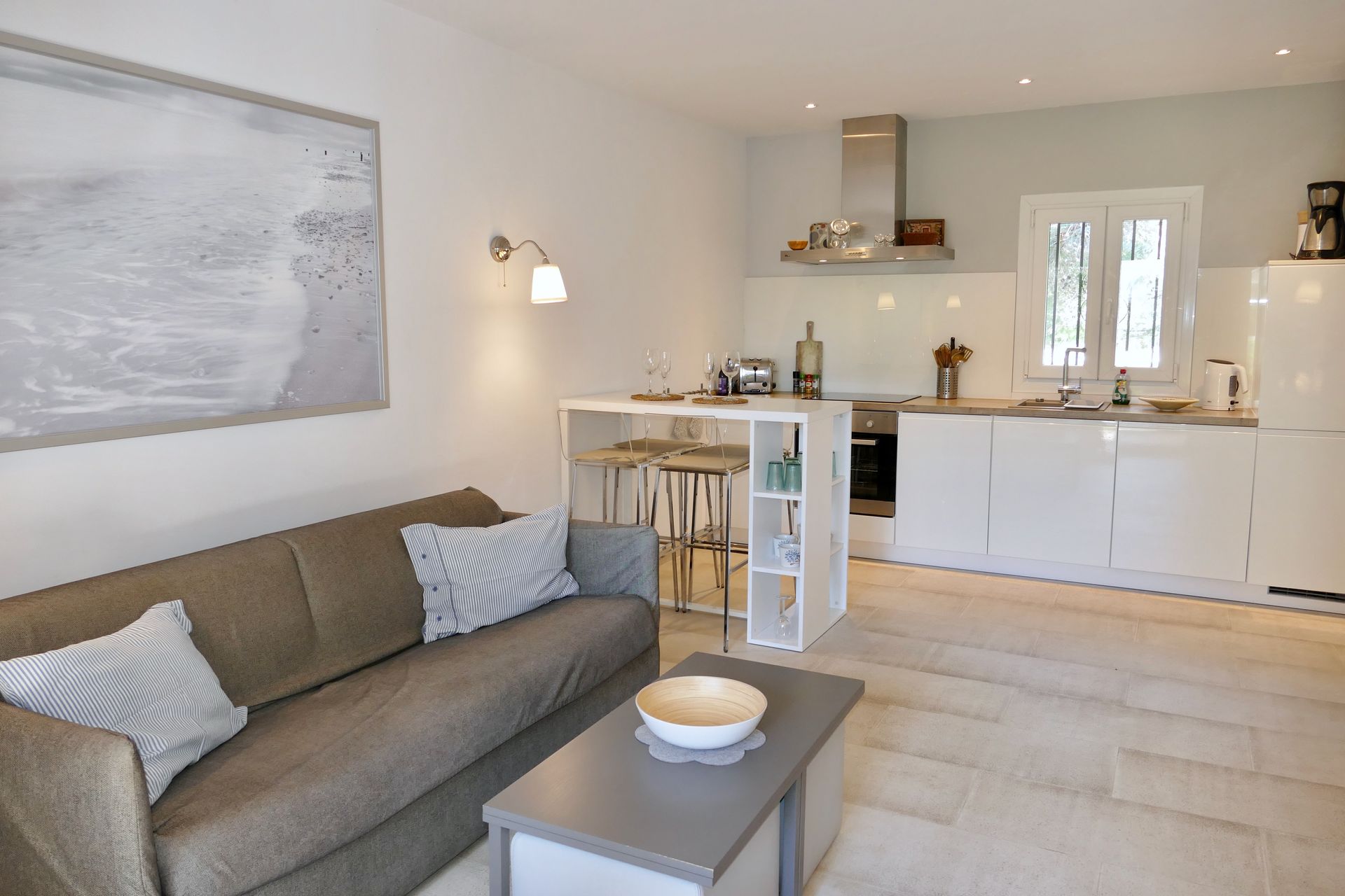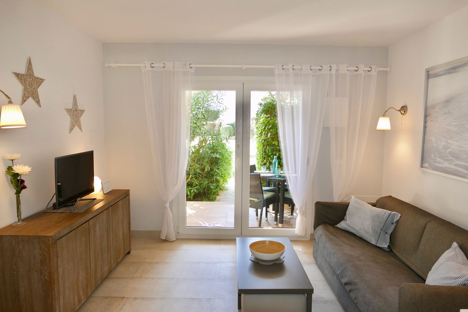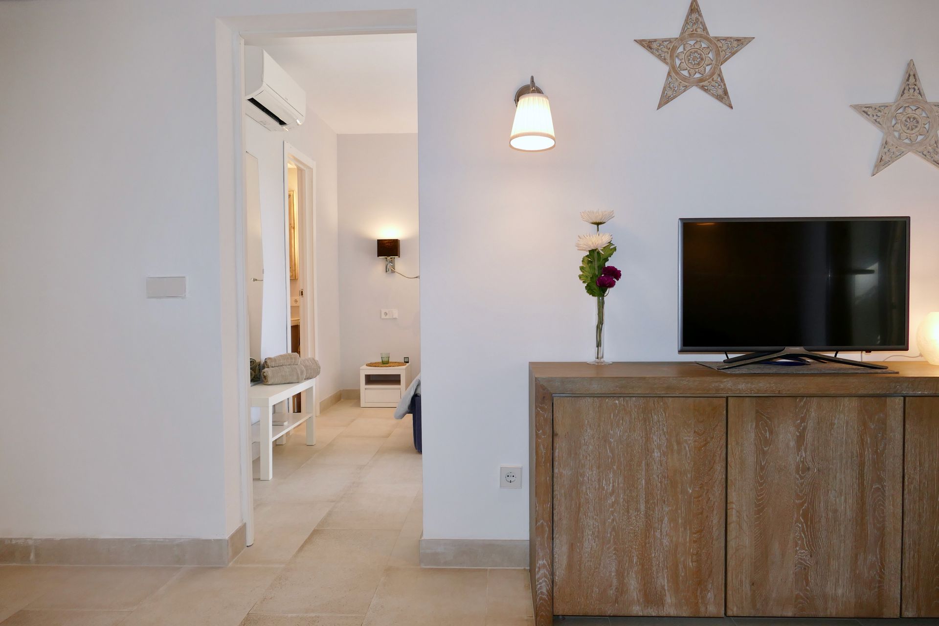 Many of the guests like to take a cliff walk to the famous rock "Es Pontas" or walk/cycle along the beautiful fields and meadow paths in the Mondrago nature reserve, which is only a few minutes away from the flat and leads to another very beautiful beach, S'Aramador. The enchanting old town of Santanyi is a good 2km away and offers all the shopping and dining opportunities your heart desires.