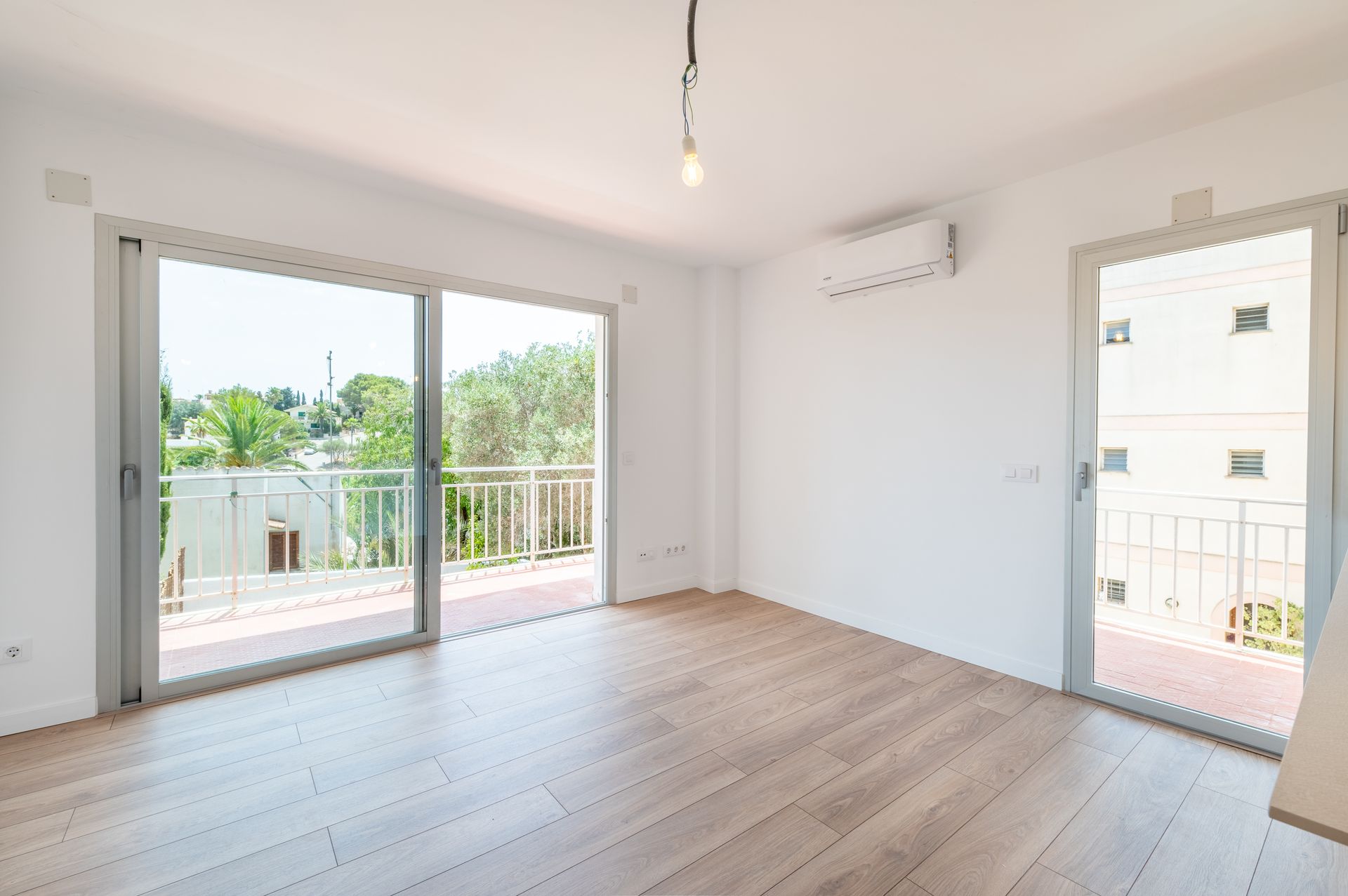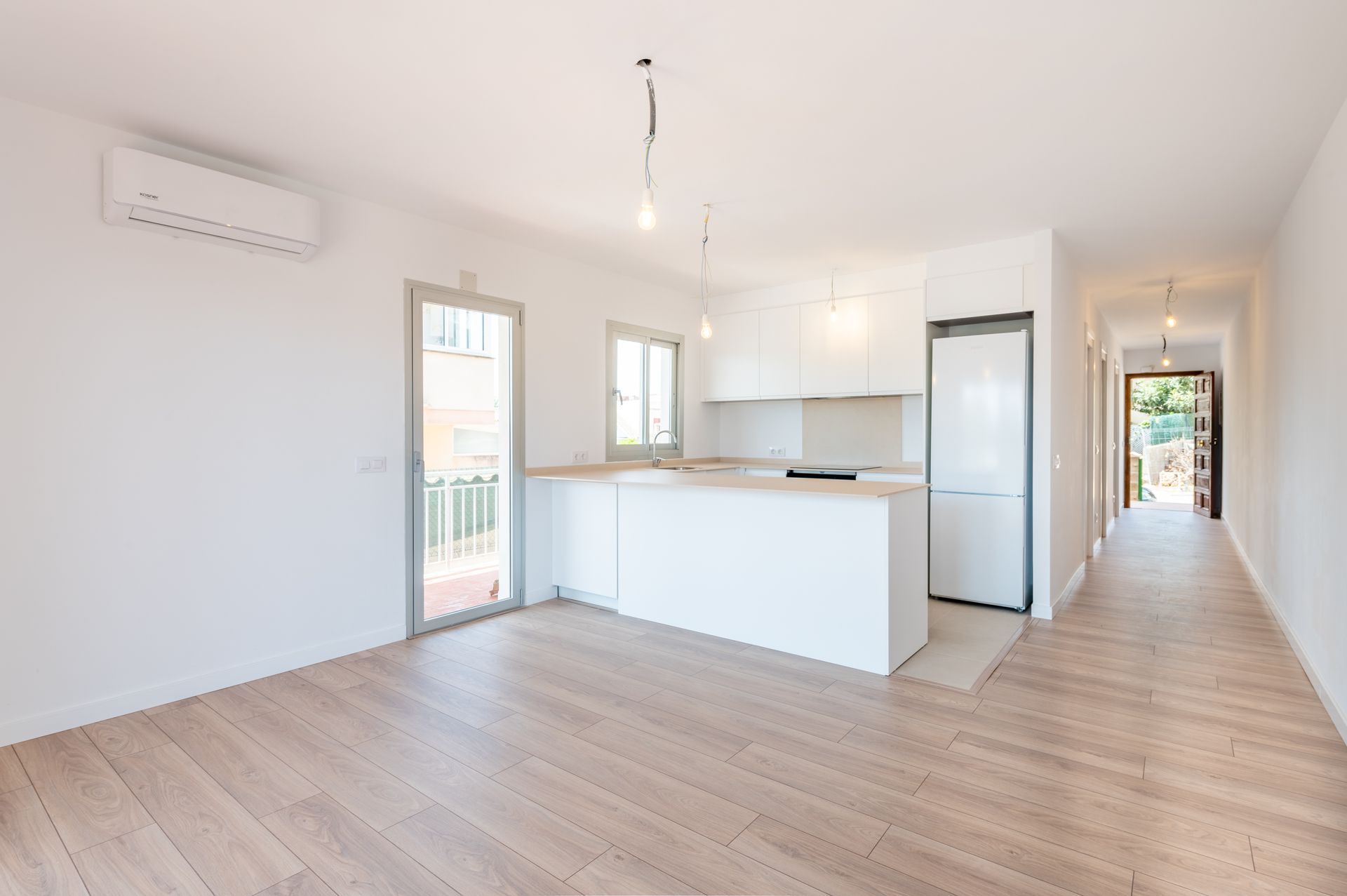 The spacious living room is designed in an open-plan style and is complemented by a modern kitchen equipped with the latest appliances. This space invites you to spend time with friends and family. The terraces surrounding the apartment allow you to enjoy the Mallorcan sun at any time of the day. A small garden completes the idyllic ambience, offering a private outdoor retreat. The practical storage rooms provide additional storage space, helping to organize the living space optimally.