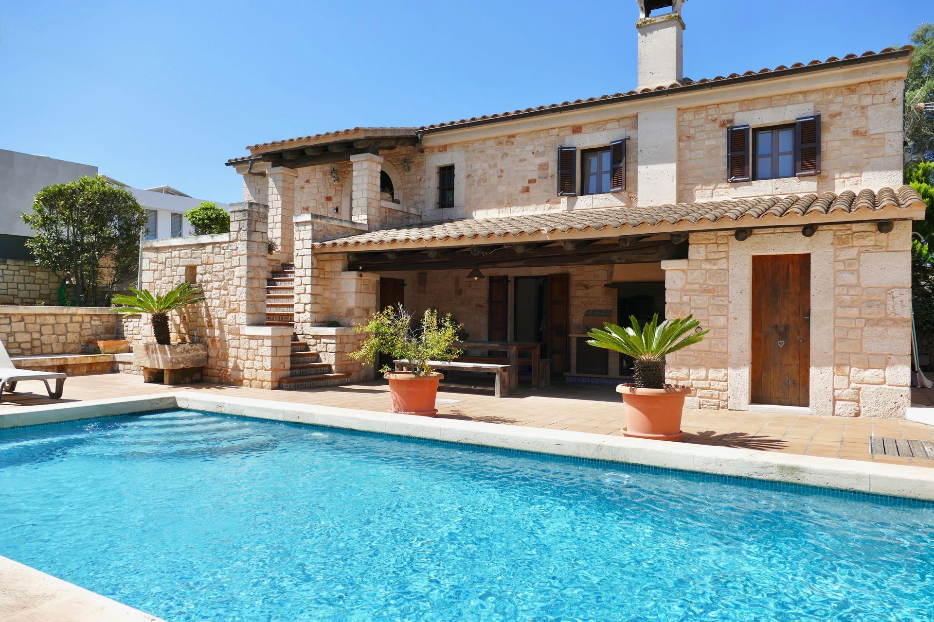 This special home is characterized by the extensive use of traditional Mallorcan materials such as natural stone and wood. You'll find Santanyí stonework, dry stone walls, and Binissalem limestone, as well as antique wooden beams and doors – all contributing to the unique, rustic style of the chalet.