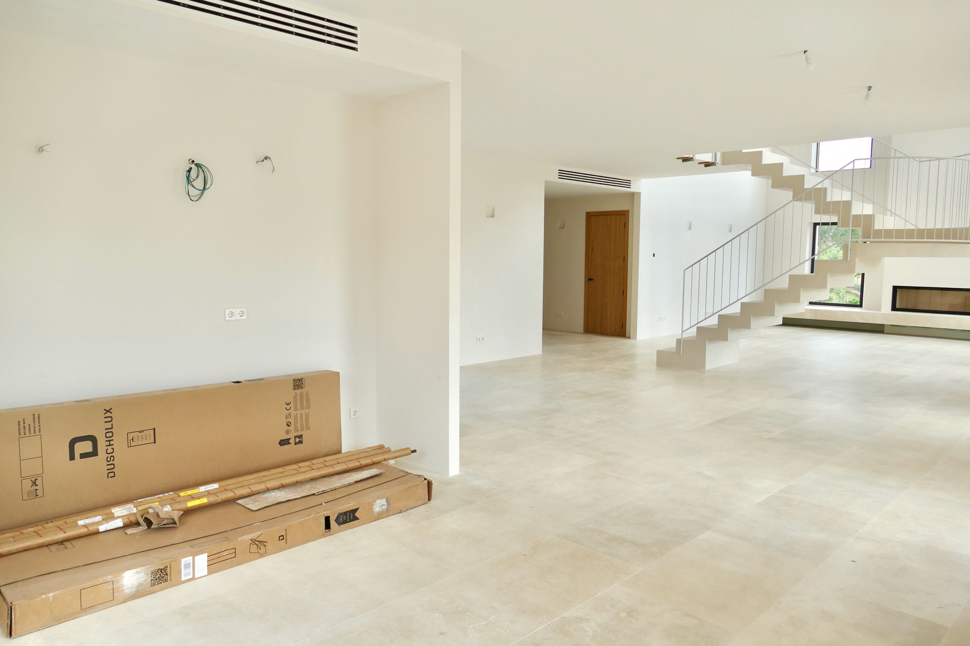 The open-plan concept is enhanced by a designer kitchen with a separate pantry, seamlessly integrated into the spacious living and dining area. A high-end HÖXTER fireplace adds warmth and coziness to the space.