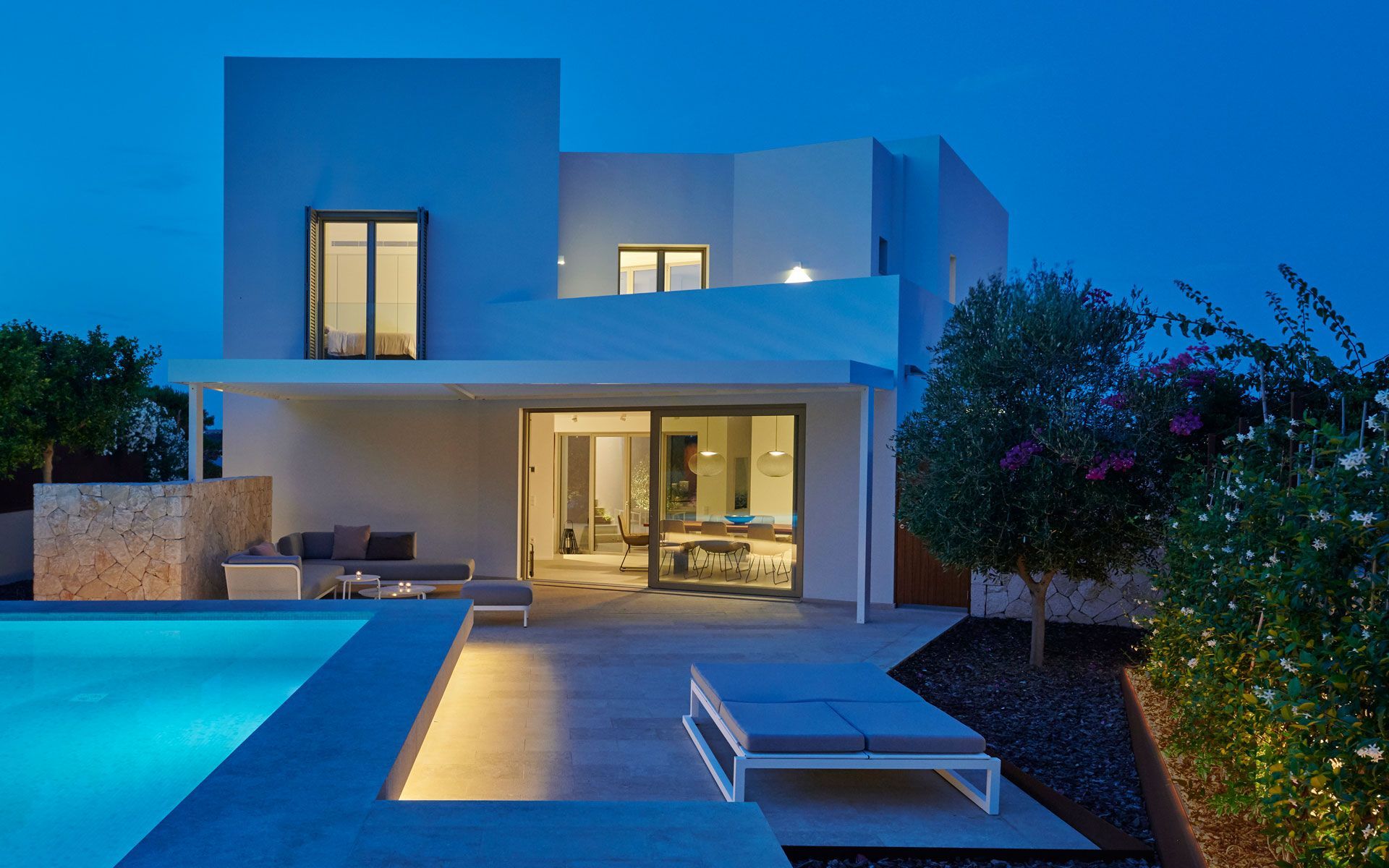 The clear, minimalist architecture and the use of the finest materials make this villa an unmistakable gem in Porto Petro. Large floor-to-ceiling windows flood the rooms with daylight, creating a harmonious connection between the interior and the exterior.