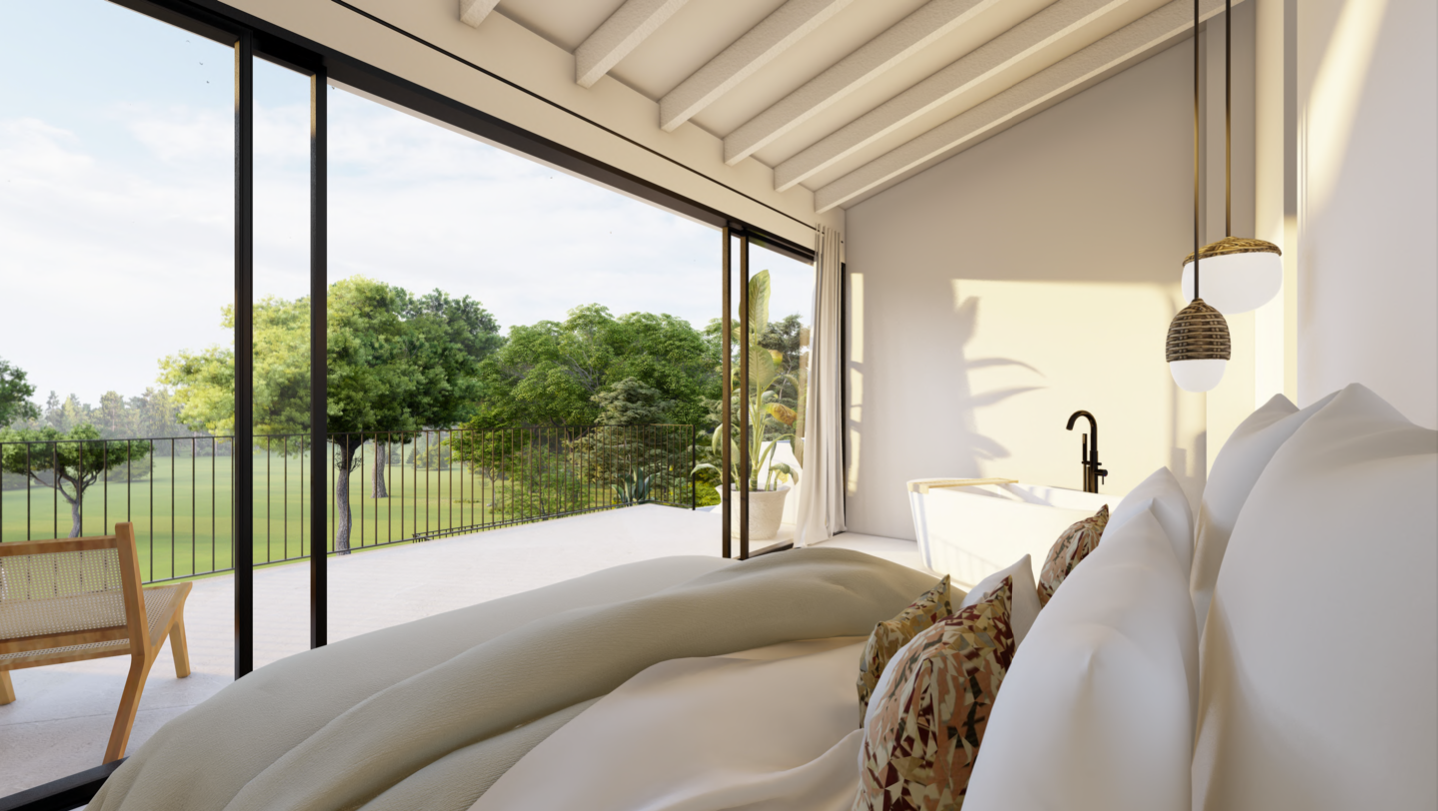 Se accede a la primera planta a través de un altillo, donde se encuentra uno de los amplios dormitorios con baño en suite. Una vez allí, le esperan otros dos dormitorios, cada uno con baño en suite y una gran terraza para tomar el sol.