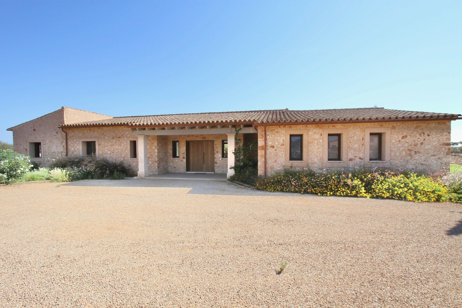 Esta casa de campo de nueva construcción en estilo mallorquín moderno ofrece un impresionante hall de entrada con vistas al hermoso patio que se encuentra en el centro de la casa e inunda todas las habitaciones con luz.