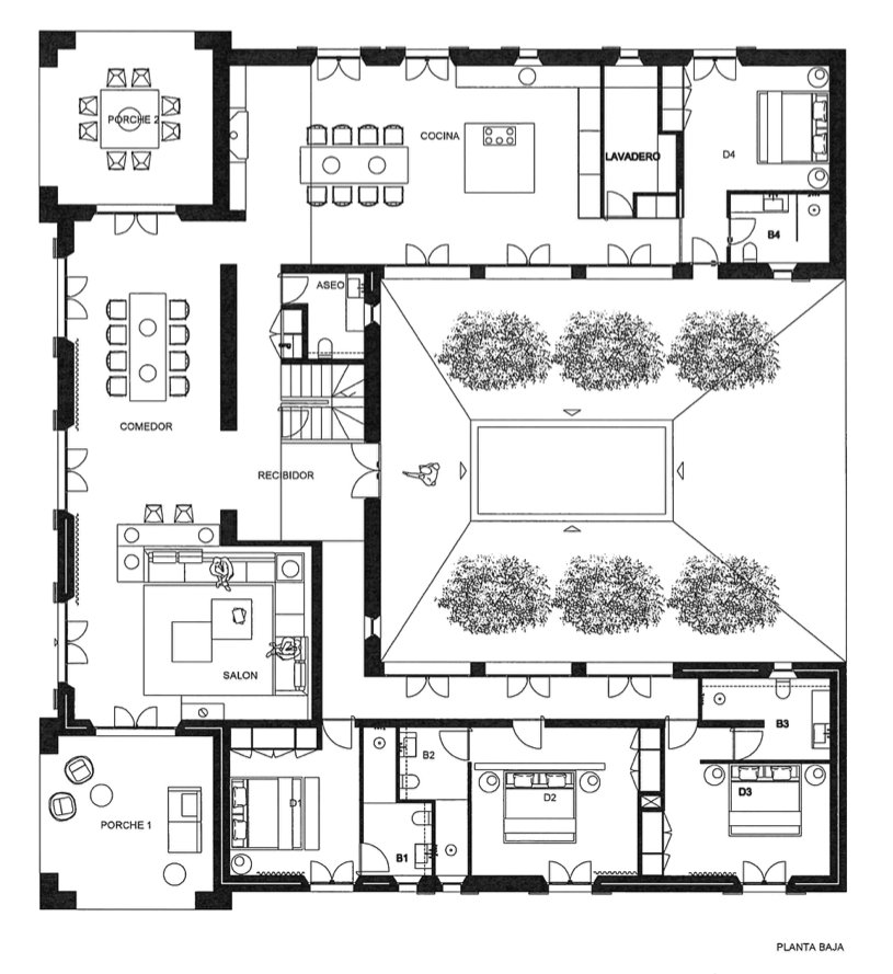Distribuida en dos plantas, la casa dispone de un amplio salón comedor con vistas a la terraza ya la piscina, cocina con isla central y chimenea incluida zona de comedor, 6 dormitorios dobles con amplios vestidores y baños en suite. También hay un lavadero y un aseo de invitados en la planta baja.