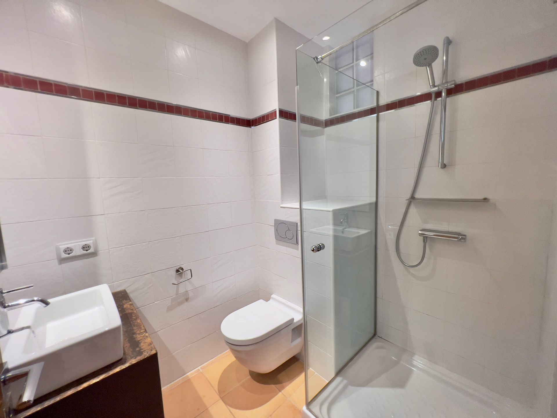 La casa de 145m² está dividida en 3 niveles. En la planta baja, junto al salón-comedor abierto con cocina integrada, hay un encantador patio con una pequeña casita, en la que hay un cuarto de baño, así como el lavadero. Mediante medidas de conversión, sería posible crear aquí una pequeña zona de piscina.