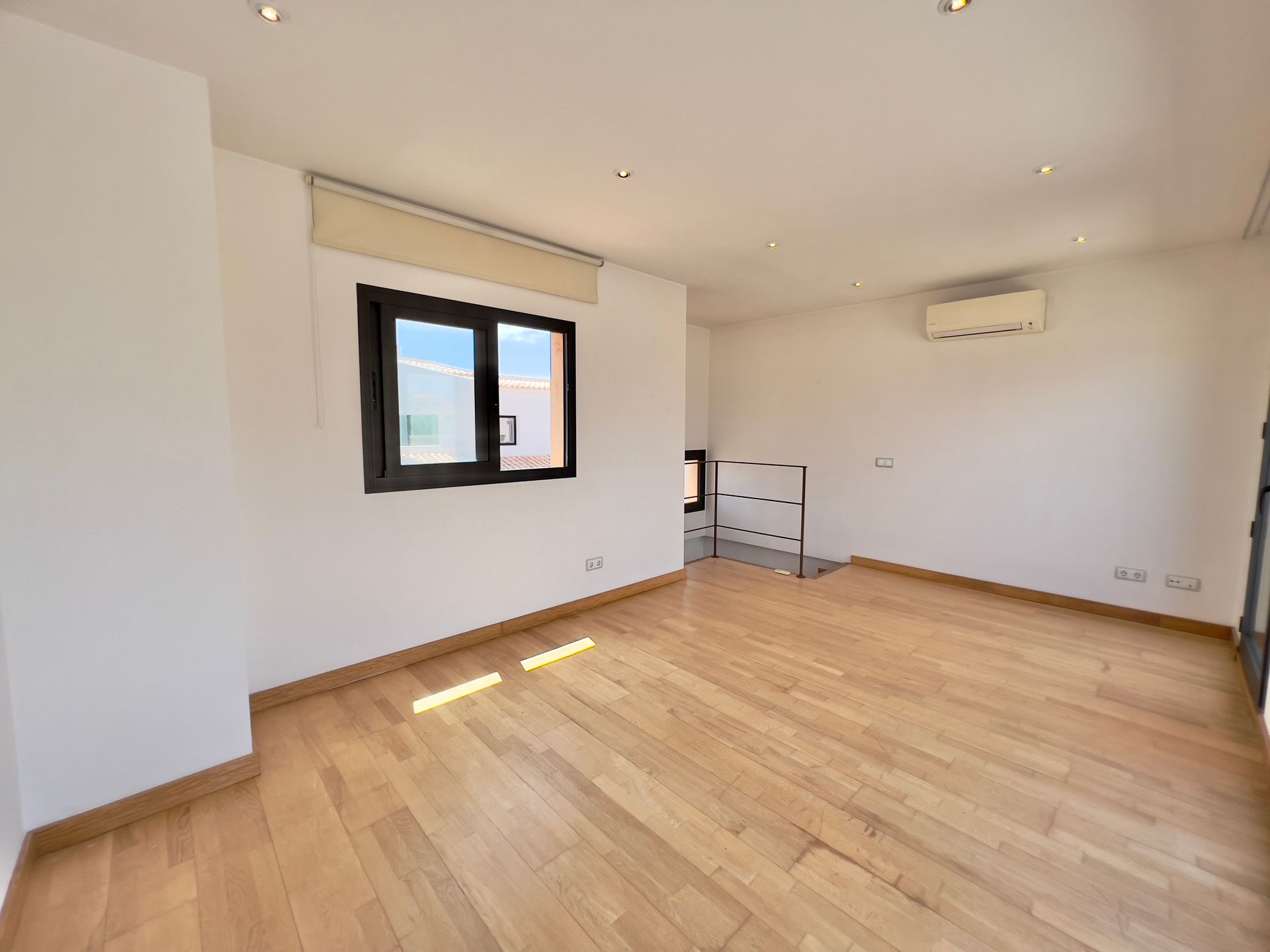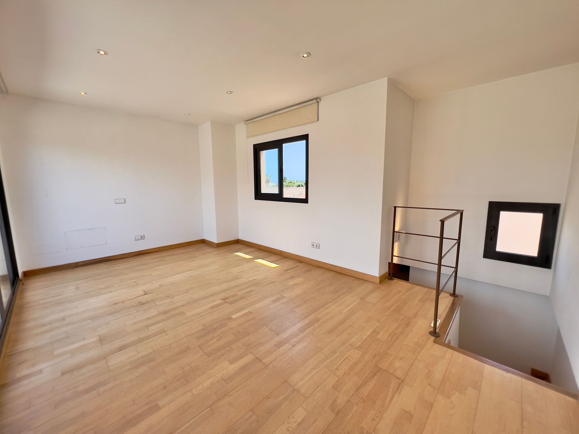 En la segunda planta se encuentra el luminoso estudio con una gran terraza contigua y unas vistas únicas sobre Santanyi y con vistas a la hermosa iglesia. El estudio es ideal como retiro.