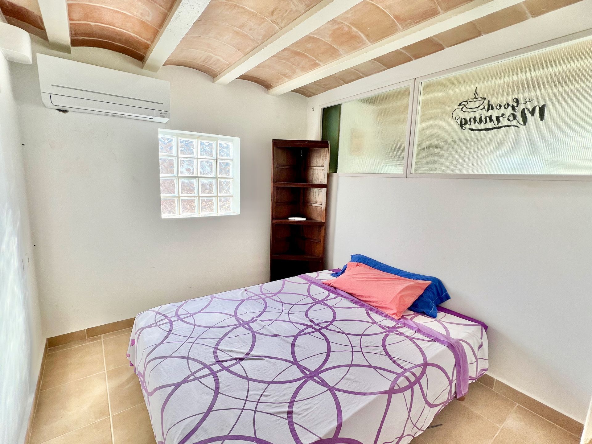 Este pequeño ático ubicado en la plaza del mercado de Santanyi tiene una superficie habitable de 70m2 con dos dormitorios, un baño y un comedor abierto con cocina equipada integrada. Desde allí tiene acceso directo al amplio balcón, que ofrece una gran vista de la iglesia de Santanyi. La escalera conduce a un pequeño trastero, así como a la singular terraza en la azotea, que ofrece una magnífica vista sobre el pueblo hasta el mar.