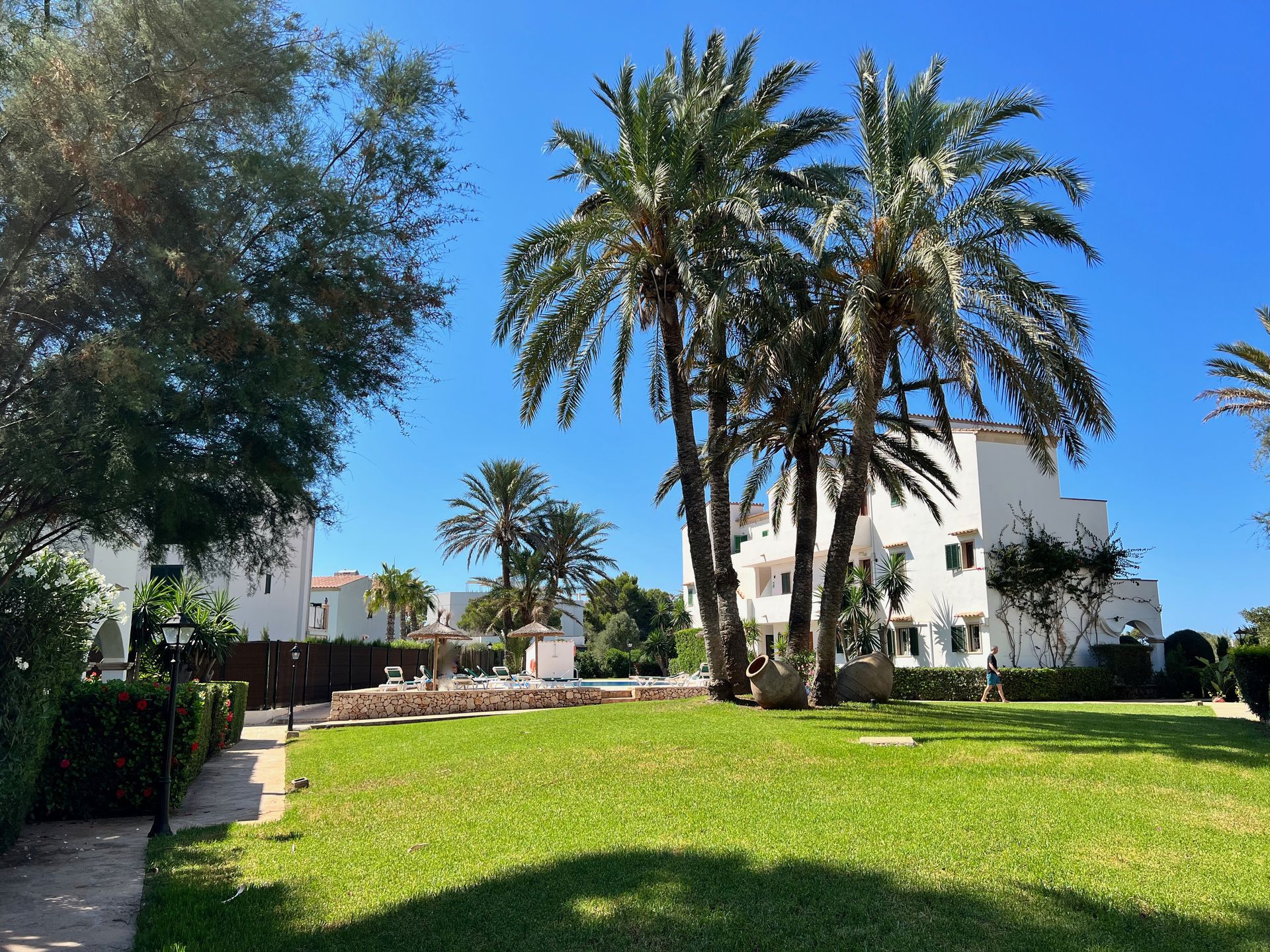 Die helle, freundliche und gemütliche 2-Zi.-Ferienwohnung (ca. 50 m² ) befindet sich im Erdgeschoss einer im mallorquinischen Stil erbauten und sehr gepflegten Ferienanlage mit Gemeinschafts-Pool und liegt ca. 250 Meter vom Strand der Cala Santanyi entfernt. Zur Wohnung gehören eine große Außenterrasse mit Sitz- und Liegeplätzen und ein schön bepflanzter Vorgarten. Die Wohnung verfügt über einen Internetanschluss und WLAN.