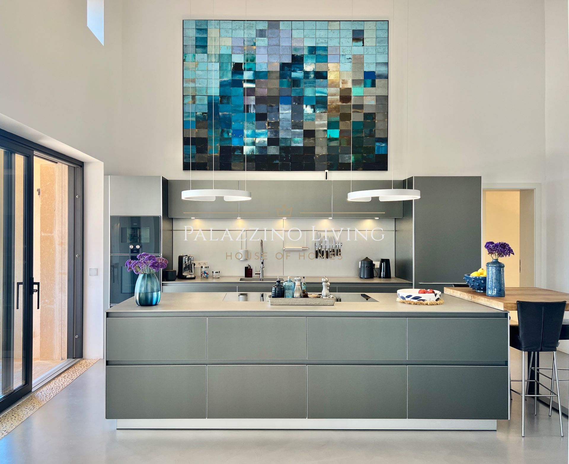 Die Immobilie vereint auf höchstem Niveau Qualität, modernes Design und den Charme des traditionellen Fincastils. Der individuelle Grundriss und die bodentiefen Fenster sorgen dafür, dass man die spektakuläre Aussicht aus fast allen Räumen genießen kann.