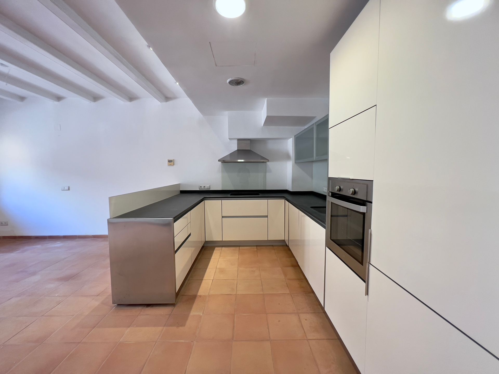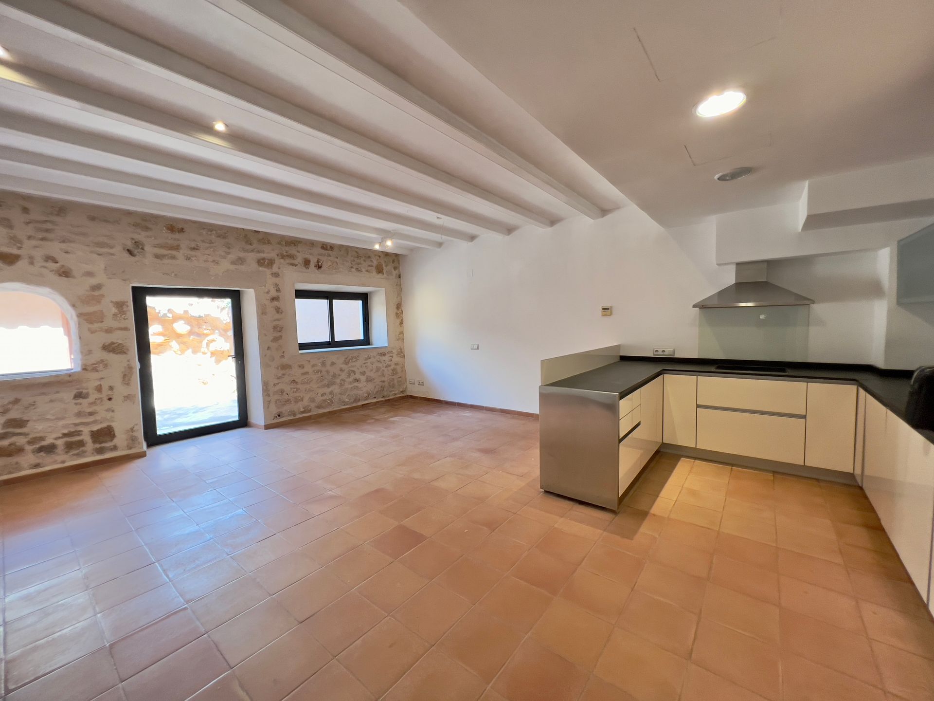 Im 2. Obergeschoss befindet sich das lichtdurchflutete Studio mit angrenzender, großer Terrasse und einmaliger Sicht über Santanyi und mit Blick auf die wunderschöne Kirche. Das Studio bietet sich ideal als Rückzugsort an.