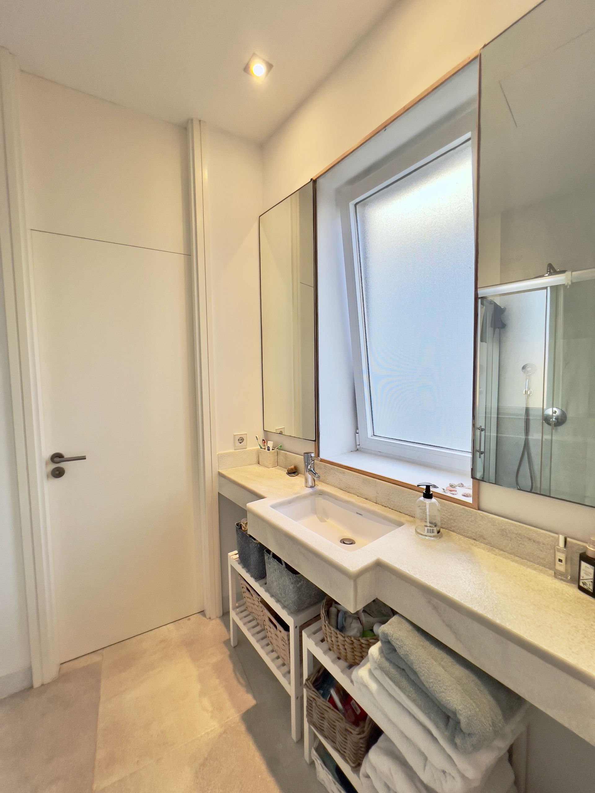 Diese elegante Wohnung verfügt über 4 Schlafzimmer, wovon 2 mit einem eigenen Badezimmer en Suite ausgestattet sind. Die beiden weiteren Schlafräume teilen sich ein mittig gelegenes Badezimmer en Suite. Ein Gäste-WC gibt es ebenfalls.